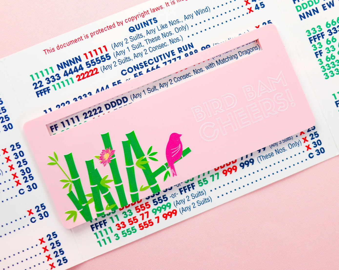 The very first design for the Mark Your Mahjong Line Marker™ was the Bird Bam Cheers design. A fun thing to do each time you discard the 1 bird bam tile is to cheers the table. I truly believe this is why Mahjong has caught fire- it gives us all a great reason to get together for fellowship, fun and community. It's a special one!