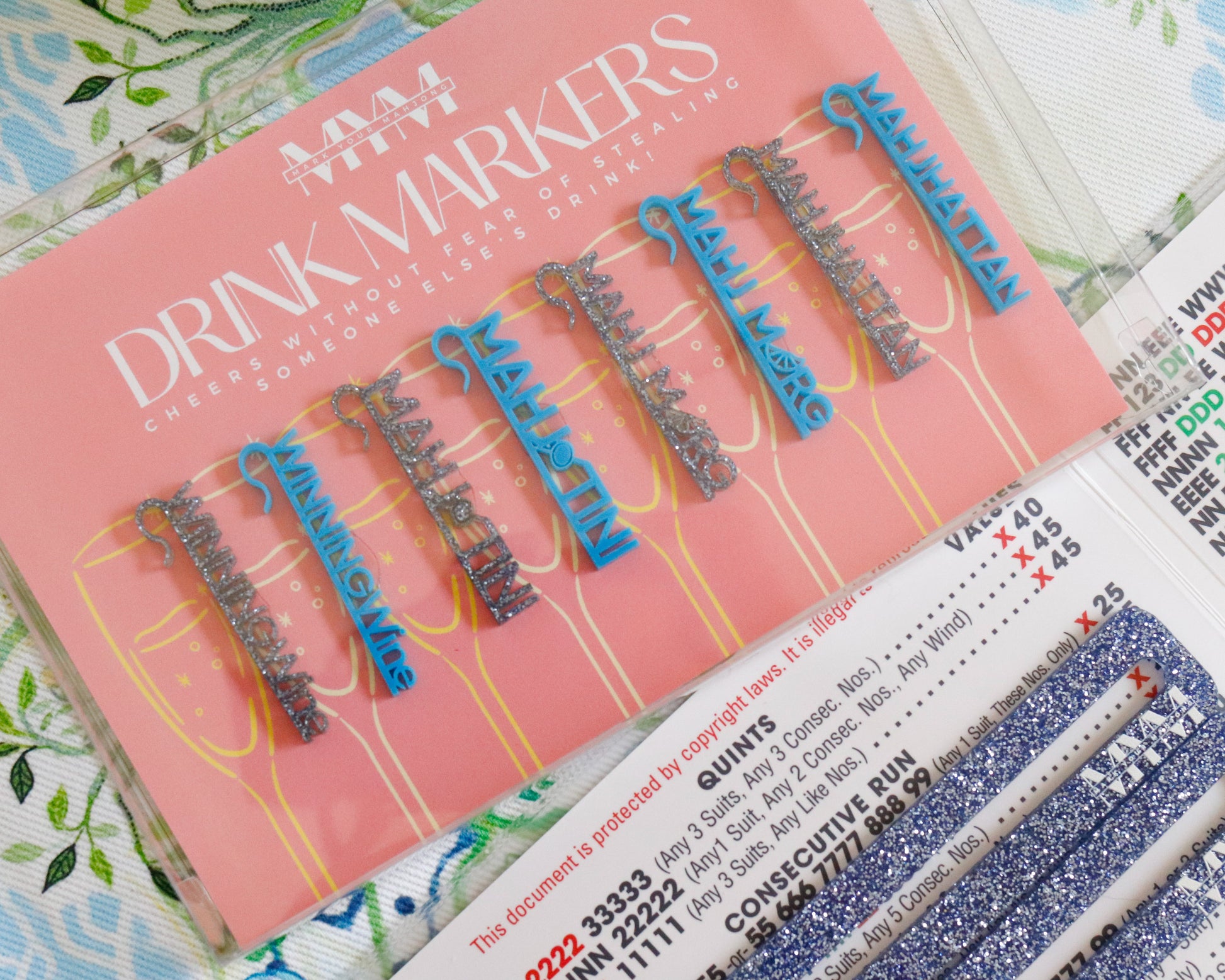 We love nothing more than Mahjong and a cocktail! Here's a way to elevate your Mahjtail with our acrylic Drink Markers. Each set comes with eight and each drink marker is intended to hang off the rim of a glass so your guests know which drink is theirs.