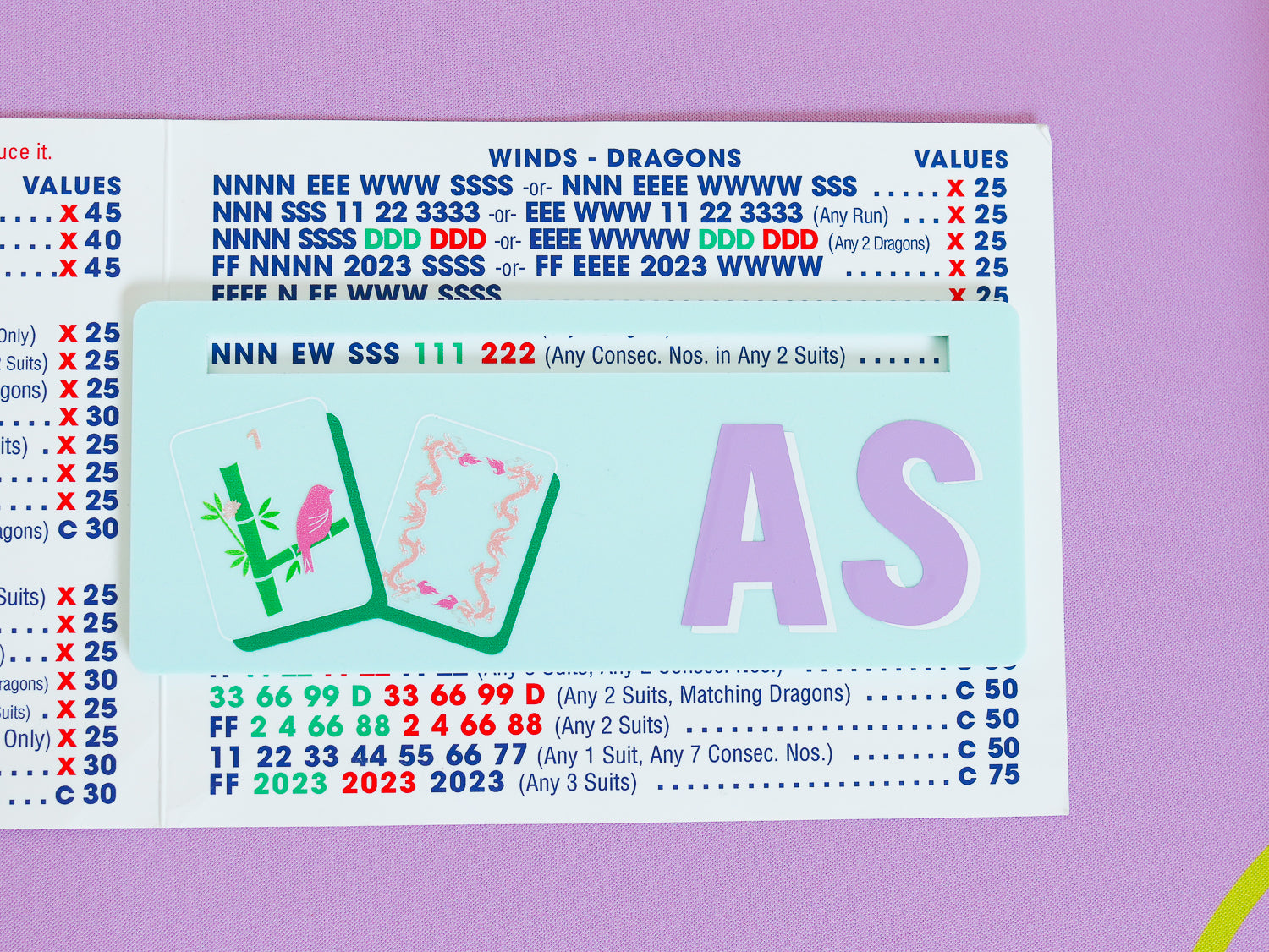 Pastel Green Bird Bam + Dragon Tiles Mahjong Card Line Marker™